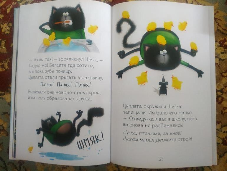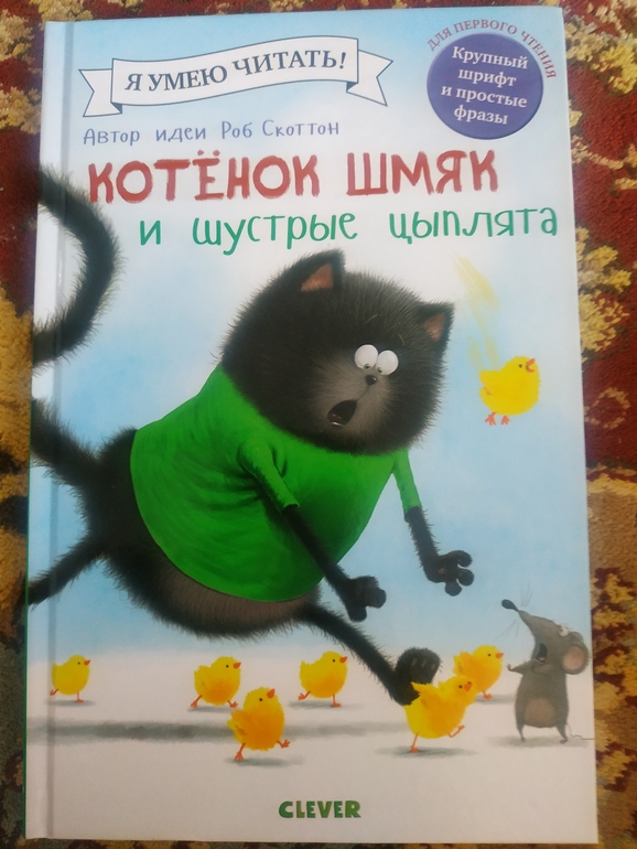 Котенок шмяк был взят на пробу. Был прочитан дочкой довольно быстро. Читала сначала мне вслух. Посмеялись. Потом прочитала папе.
