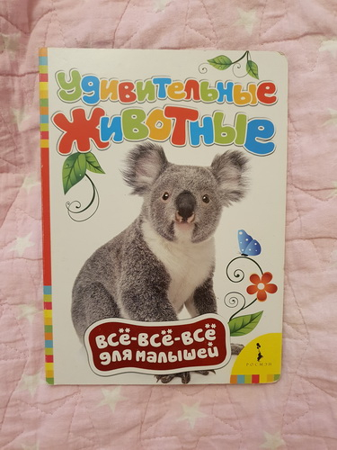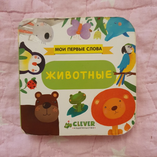 Остались после старшей тематические мини-книжки от Клевера. Иллюстрации на мой взгляд там на любителя, но почему-то детей цепляют=))) Софийку из нескольких книг зацепили только животные. Формат у книги очень маленький, удобно брать с собой. На каждой странице нарисовано одно животное.