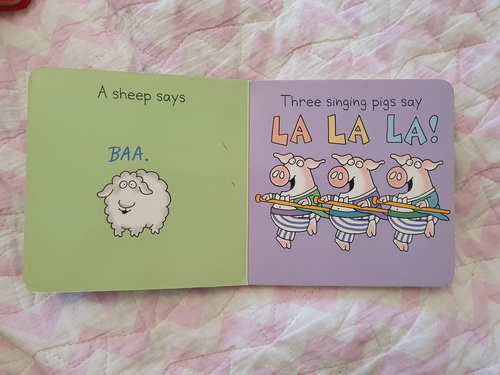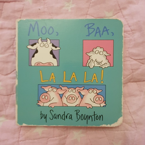 Еще старшая была большим любителем Сандры Бойнтон, у нас много ее книг. А вот младшая сестру не поддержала=) Выделила только одну книгу - про животных, остальные игнорирует. Иллюстрации у Бойнтон тоже очень своеобразные))) В книгах ее зарифмована познавательная информация, в этой - звуки животных.