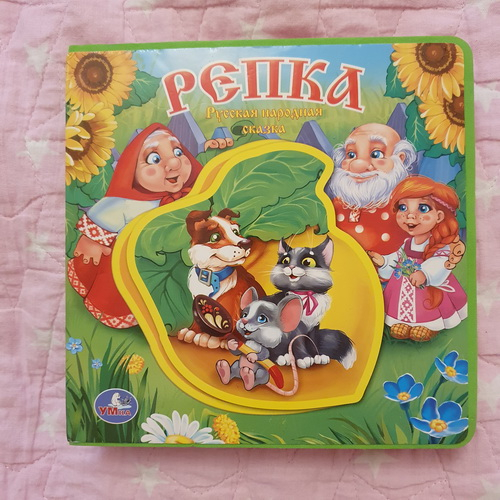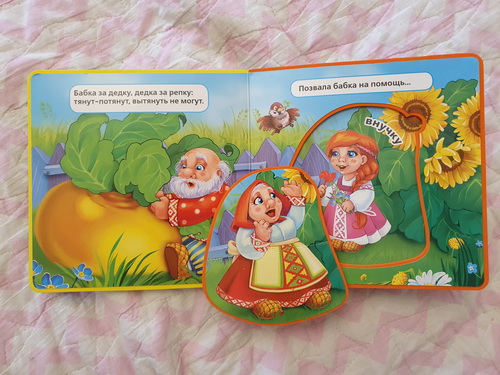 Это Репка с персонажами. Задумка отличная - фигурки можно вытаскивать и разыграть сказку, только, как по мне, не до конца редакторы все продумали - могли бы и саму репку сделать фигуркой, чтобы уж совсем театр получился. Формат книги большой, дочь оценила опцию выковыривания фигурок. Но со временем они стали сами вываливаться (что уже не оценила я=))))