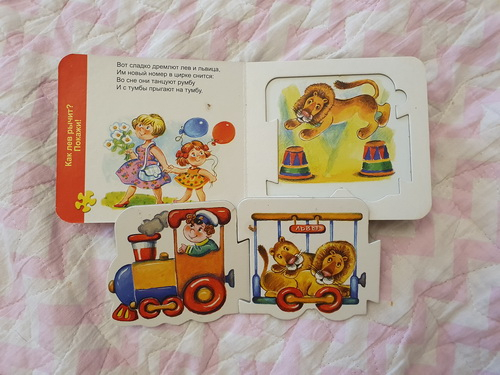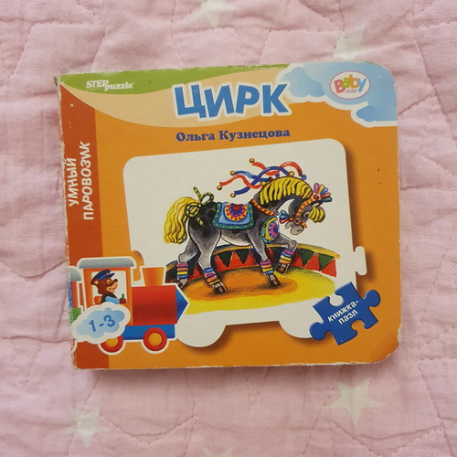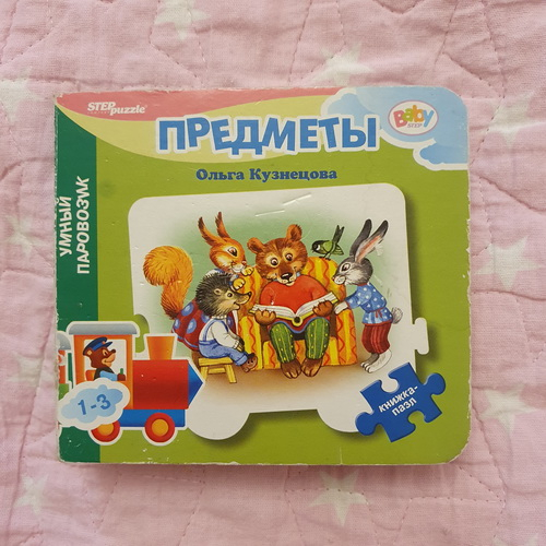 Удачная и недорогая серия попалась от Степ-пазл, покупала книги в полет еще год назад. Полностью оправдала себя=) Детали можно вытащить и сложить в полноценный паровоз с вагонами. По тематикам - Цирк больше подходит (там звери), про предметы (там мебель) не особо была оценена.