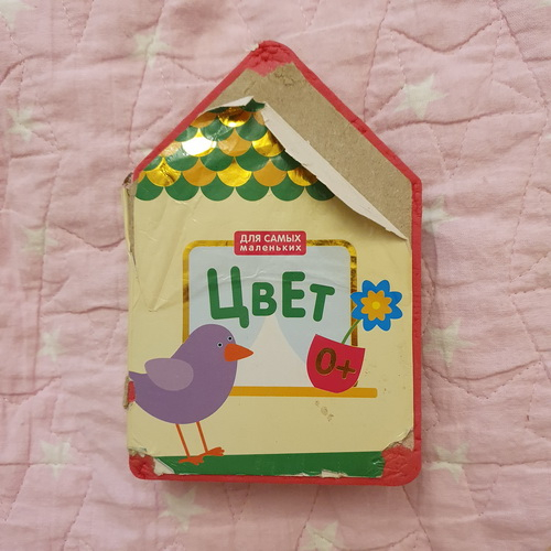 Эта книга появилась еще до года, поэтому и в таком состоянии=)))) Книга про цвета. Мне понравилось, что упомянуты не только цвета радуги, но и основные - белый, черный и коричневый.