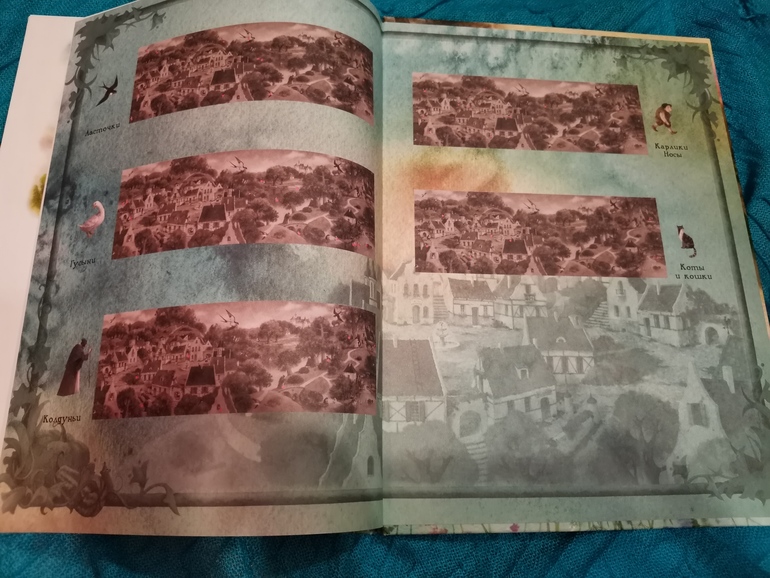 В середине книги ещё есть игра-квест. Странички раскрываются в карту, нужно что - то там отыскать.