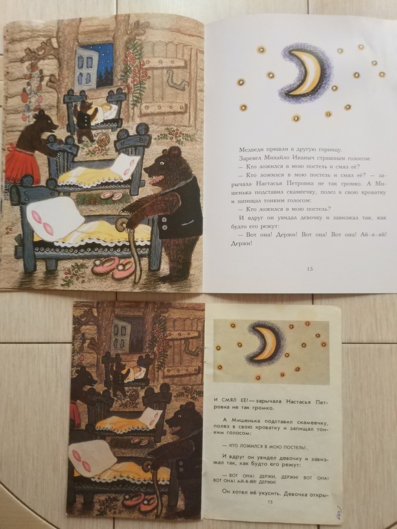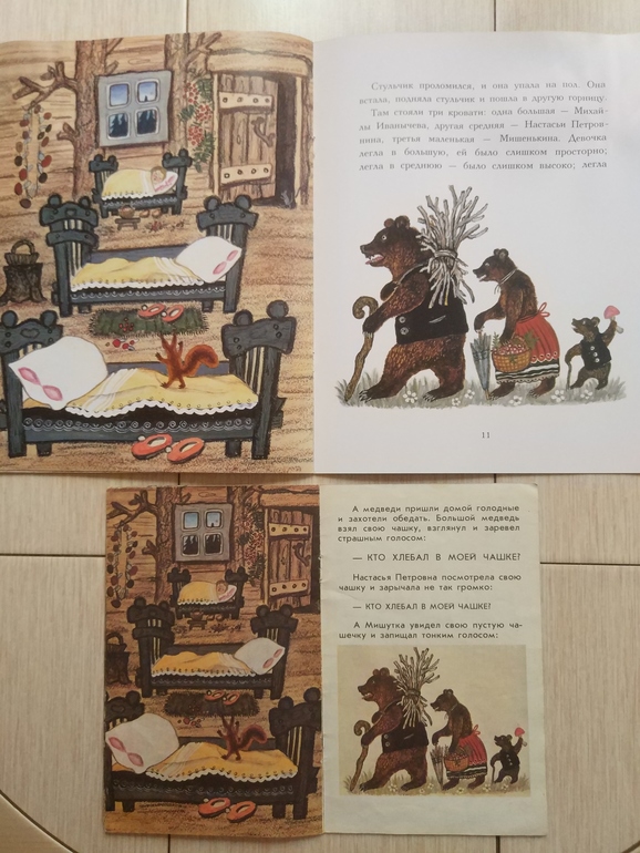 Была у меня в детстве книжка Три медведя с рисунками Васнецова Ю. Как то со временем затерялась и ребенку была куплена книжка переизданная издательством Мелик-Пашаев.