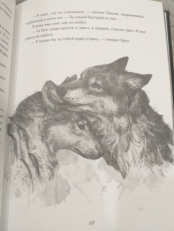 Пронзительная история, написанная простыми, отрывистыми предложениями, ведь только так и мог говорить волк) В книге нет кроваво-смачных подробностей охот и нападений, но все написано честно, жёстко, но не жестоко.