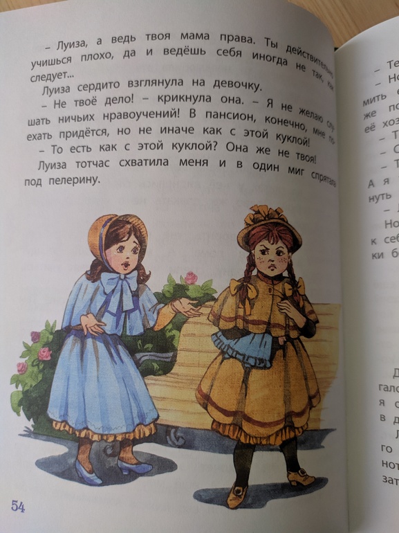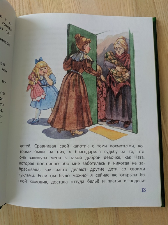 Много внимания в книге уделено пошиву одежды кукле, подбору гардероба и т. п. вещам, т. е. хорошо передается быт и атмосфера конца 18 - 19веков.