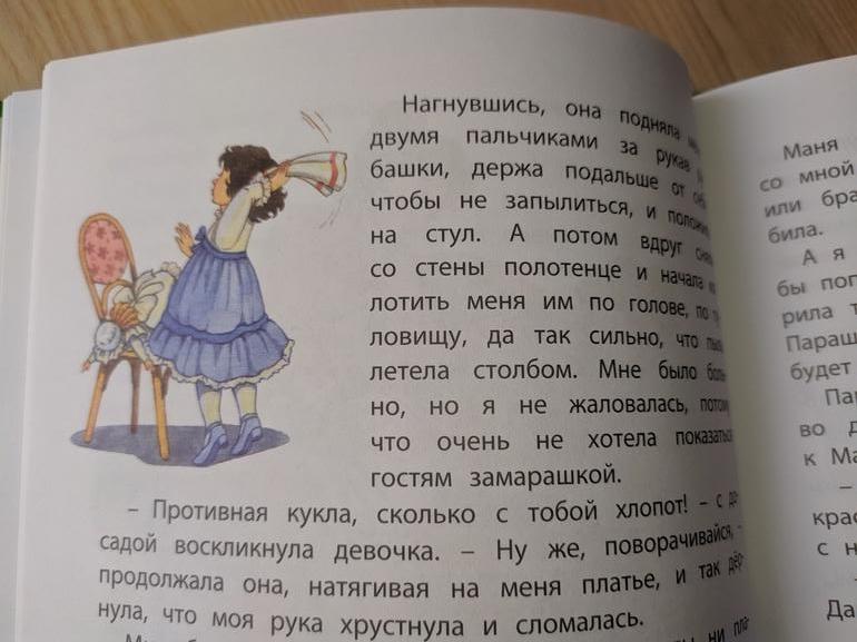 Следующая прочитанное произведение в июне написано от лица куклы Милочки. "Записки куклы" Варвары Андреевской 1898г. затрагивает множество тем приятных и неприятных: кукла "путешествует" от одной девочки к другой. Каждая девочка уникальна, каждая по-разному относиться к кукле. Затрагивается тема социального положения, обеспеченности семей, разные варианты общения родителей и детей, разные жизненные ситуации, жизнь в пансионате, в деревне. Книгу обсуждать однозначно с ребёнком, много нравственных тем затронуто: