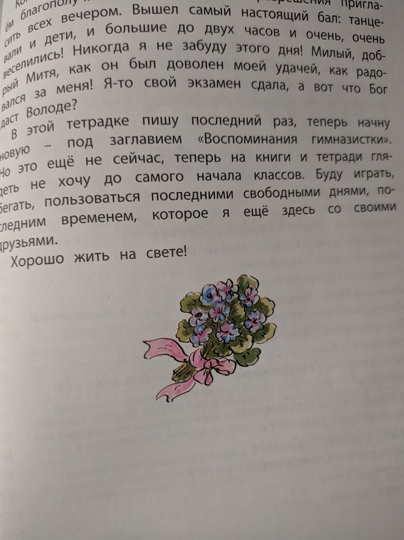 Следующая книга "Воспоминания гимназистки" - продолжение данной истории. Обязательно найдем и прочтем. Кстати, теперь знаем, что 1и́ класс был выпускной)