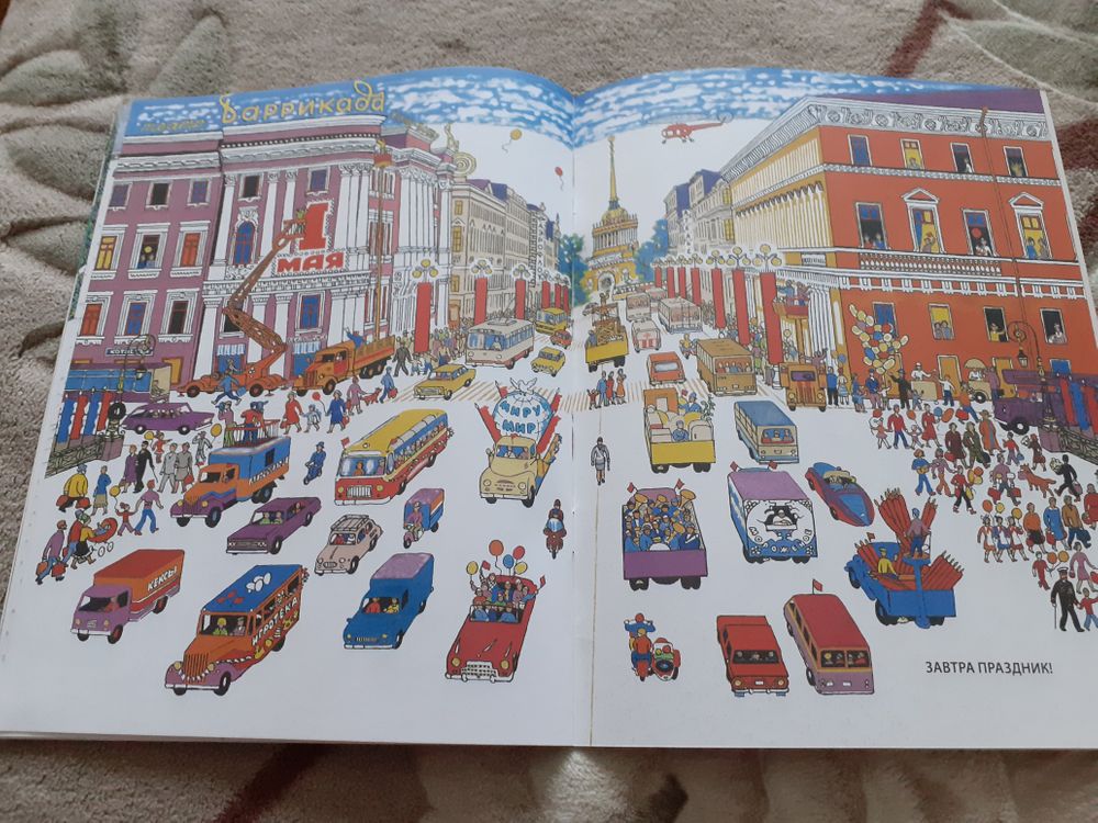 Эта книга , в которой почти нет текста, книга для разглядывания. Была издана впервые еще в 1963 году, в 1981 году были внесены некоторые изменения. В ней можно увидеть советский город Ленинград. И конечно различный транспорт! Для любителей машинок очень даже! Мой сынок когда то сходил с ума по машинкам, если бы книга попала к нам в руки тогда...