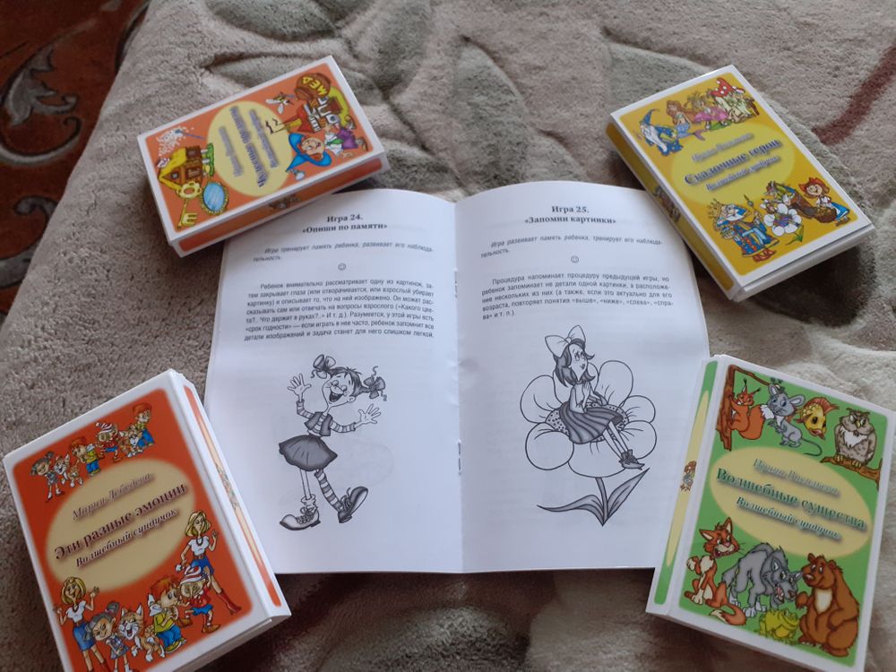 "Книга сказочных игр". Книжка с играми, 4 комплекта из карточек для игр.