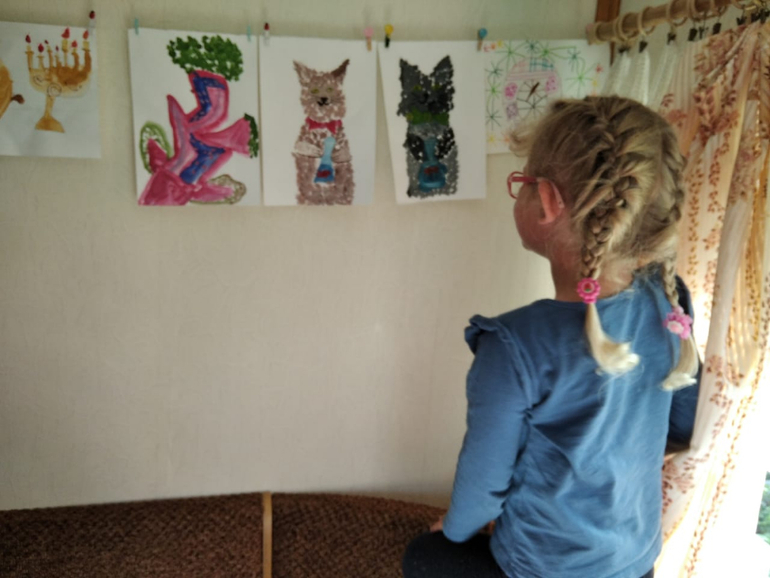 Тасе продемонстрировали все подарки, подняли ее повыше, поднесли ко всем рисункам))
