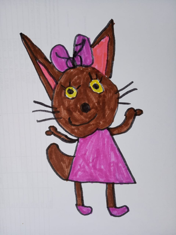 Лиза рисовала фломастерами по видеоуроку Карамельку из Трех котов