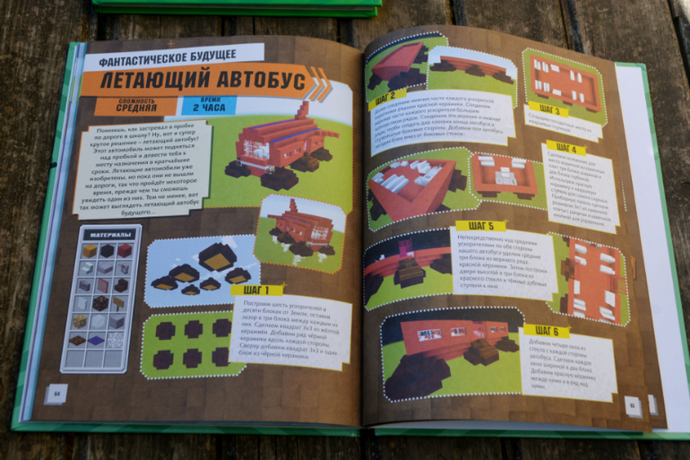 В книге содержаться понятные, пошаговые инструкции и разные лайфхаки по строительству в игре Minecraft разных исторических сооружений (как из прошлого, так и из будущего), тут есть и пиратский корабль и Терракотовая армия, и пирамиды, есть и фантастические объекты, например летающий автобус, ну и многое другое (фото с содержанием я добавлю). Кроме того, в книге содержится и немного интересных фактов о самих исторических объектах, что на мой взгляд является большим плюсом и поможет заинтересовать ребёнка не только архитектурой, но и историей!