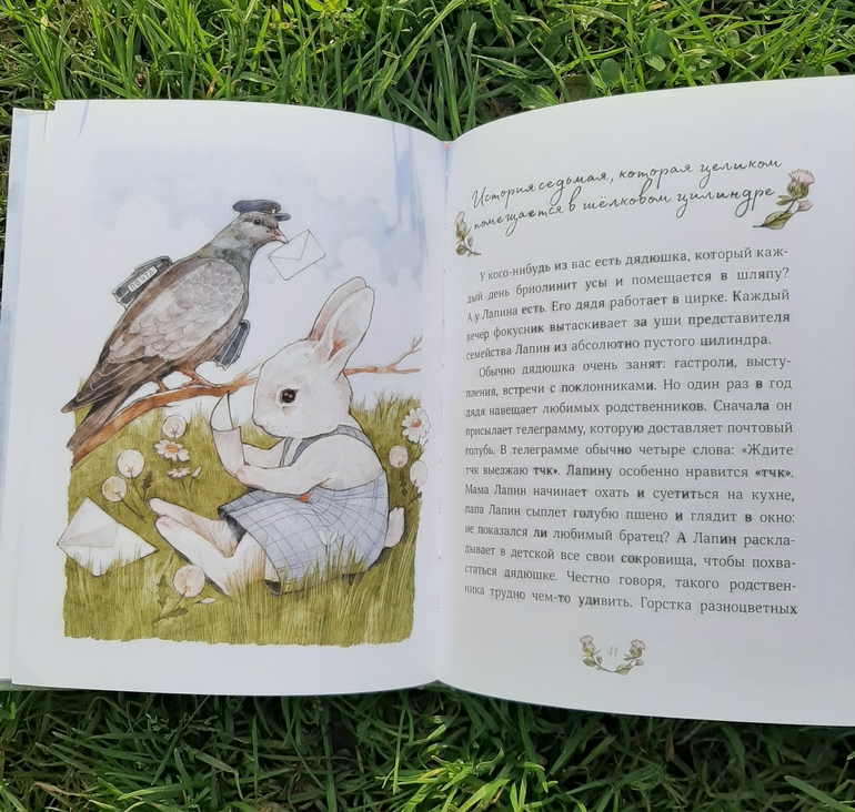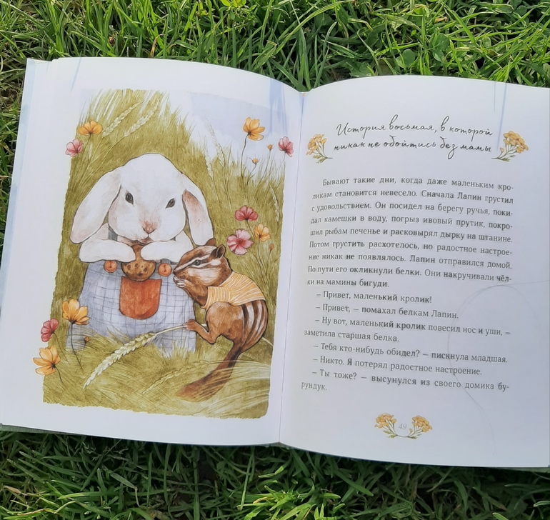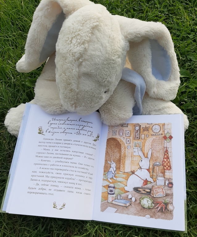 Решила, что чудесная книга про маленького любознательного Лапина как раз придется ко двору. В книге 12 коротких рассказиков, несколько милых стихотворений, пара рецептов и одна инструкция, как сделать бумажный фонарик) а еще милые, нежные, пастельные рисунки Маши Судовых и мир маленького любознательного, общительного и открытого всему новому кролика!