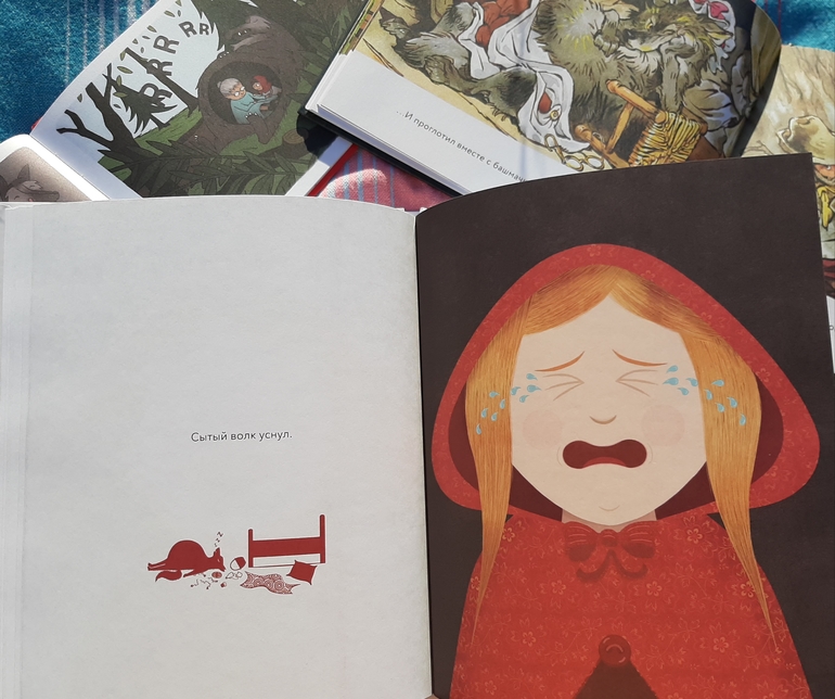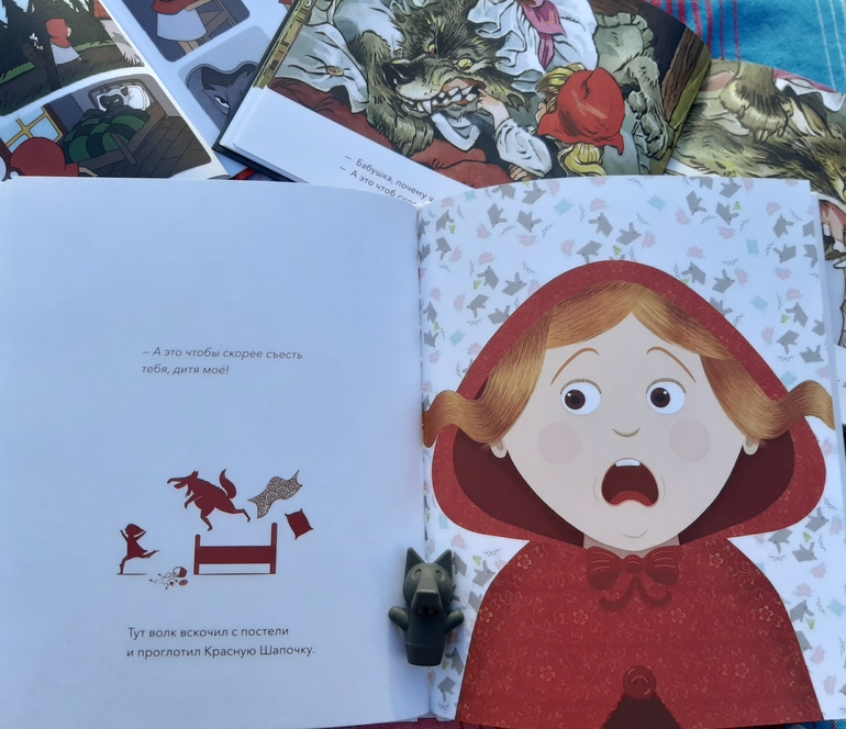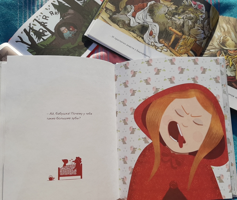 Не могу сказать, что сказка Красная Шапочка у нас самая любимая, но ее так чудесно и разнообразно иллюстрируют, что у нас в доме накопилось как минимум 5 вариантов🙈 Но могу сказать точно, такой у нас еще не было!