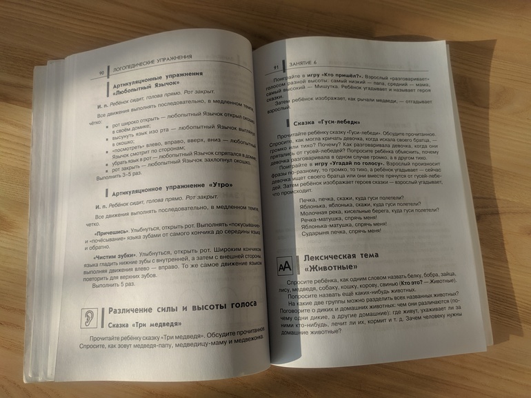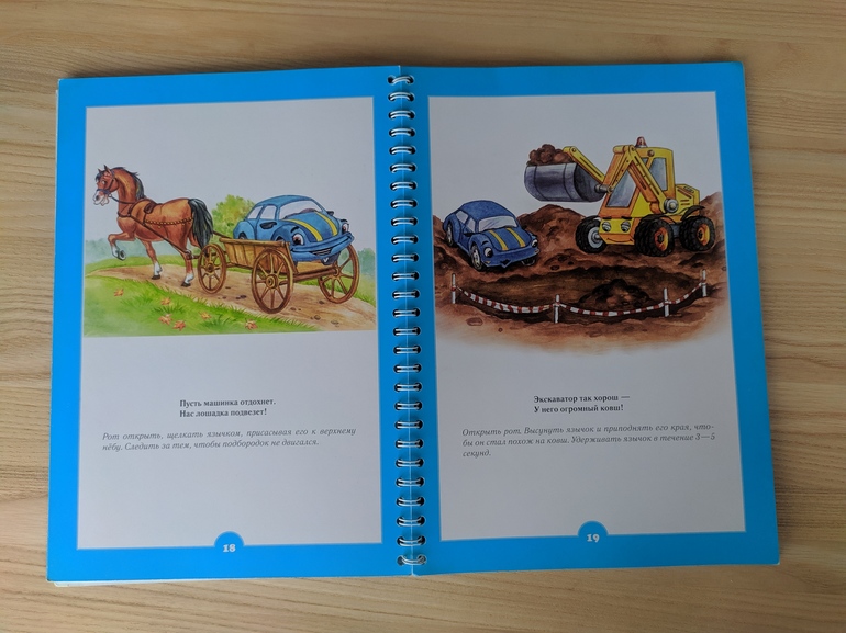 В игру можно превратить артикуляционную гимнастику, дыхательные упражнения, простой логопедический массаж. При выборе пособий важно обратить внимание на подробности выполнения упражнения. Формулировка "поцокайте язычком как лошадка" не раскрывает положения языка относительно неба, зубов и т. д. Так как определенные звуки появляются в конкретном возрасте, удобно пользоваться сборниками соответственно возрасту малыша.
