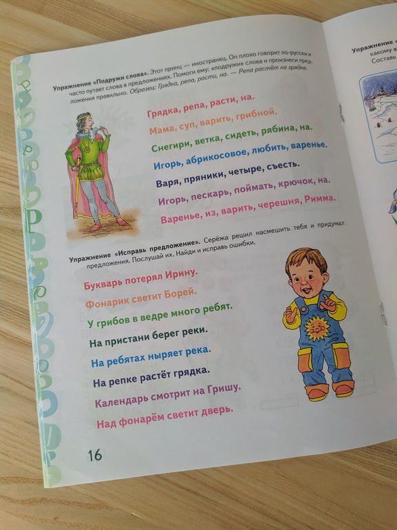 Е. Ульева "Большая книга заданий по развитию речи", на мой взгляд, представляет собой сборник игр и заданий. Книга А4, 40страниц, в середине цветные вкладыши. В ней множество подборок игр, в которые удобно заняться в дороге, в очереди, на прогулке или просто лежа на диване)