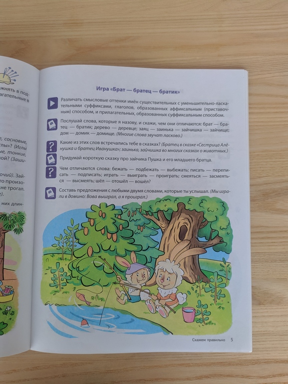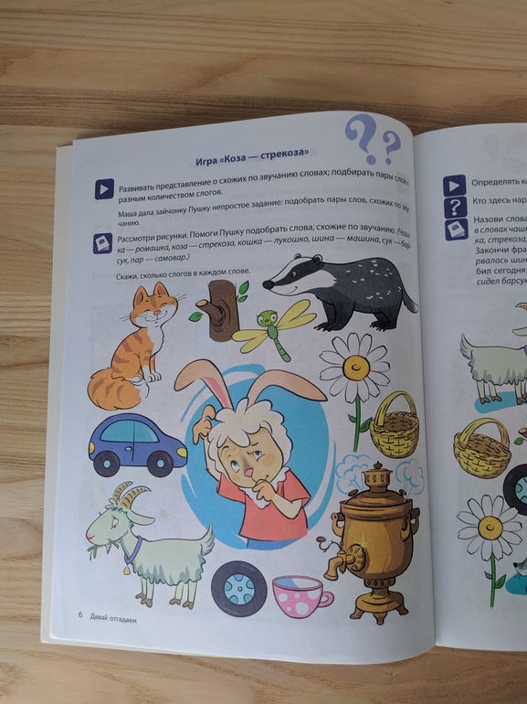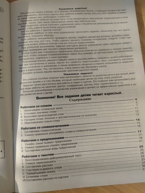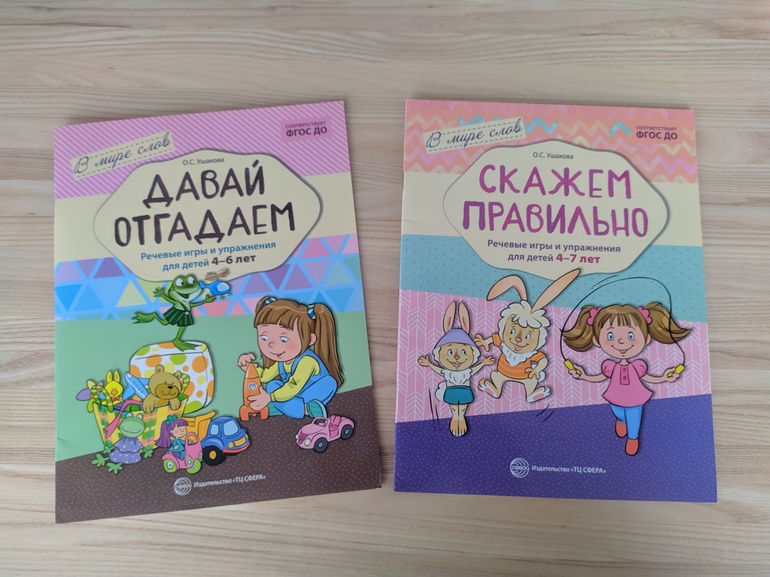 "Давай отгадаем" и "Скажем правильно" от издательства "ТЦ " Сфера " содержат задания и вопросы, с помощью которых родители легко проведут занятие по теме. Но надо иметь представление о том, как составить рассказ или каким образом можно посчитать количество слогов в слове. Таких подробностей в книге нет: