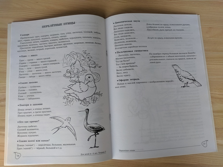 "Ладушки" (Литера-детям) - очень удобно заниматься по данному пособию: текст прост для запоминания, иллюстрации движений наглядные; на странице рисунок, отражающий смысловую нагрузку. Долго по данной тетради занимались с дочерью, у сына было менее популярно. Периодически достается и в 4 года. Черно-белое оформление, формат А4, листы не плотные, слегка просвечивают: