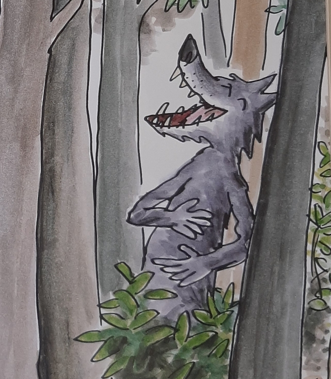 Этот самый хитрый очень ловко всунулся в в розовую ночную рубашку бабушки, а вот быстро высунуться то не смог, так и бегал по лесу, на потеху всем лесным жителям , пока без зубов не остался( вообщем, довыпендривался🙈