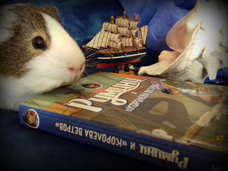 Мышей для фото, как видите, не оказалось))) Отважным юнгой стал Беляш - морской поросёнок. Кстати в книге читатель тоже встретиться с морской свинкой, в одном эпизоде, а еще вместе с мышатами спасет хомяков, которых украли пираты-крысы.