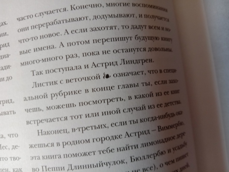 Фишкой книги является регулярно появляющийся значок в виде веточки с листиком.