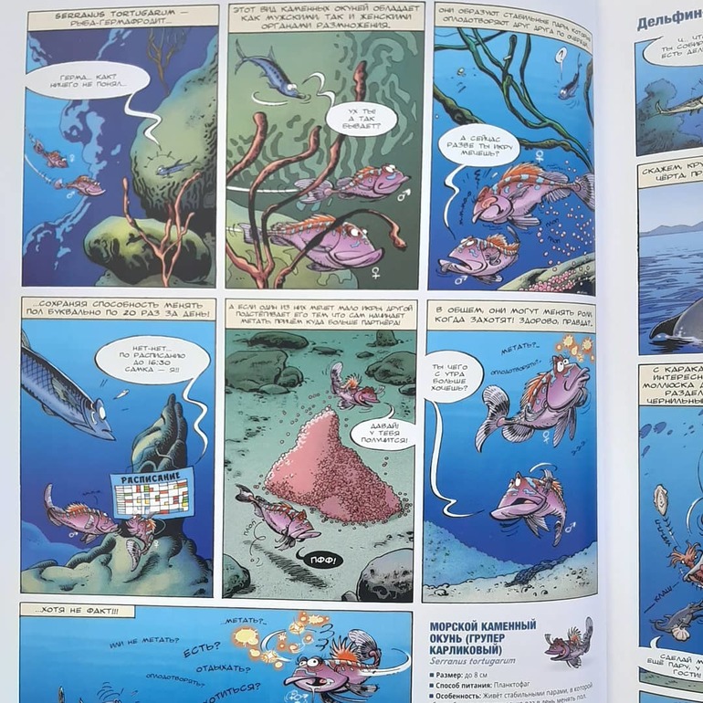 Мне кажется, с помощью этих комиксов можно запросто узнать поближе морской мир, написать реферат, задуматься о важном и немного посмеяться.