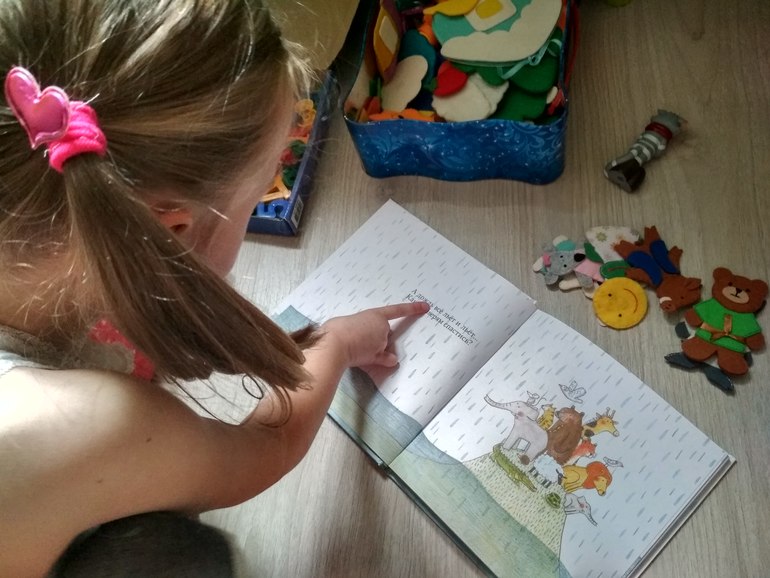А для Алёнки припасла новую книжку Дюбюк Звери на ковчеге,