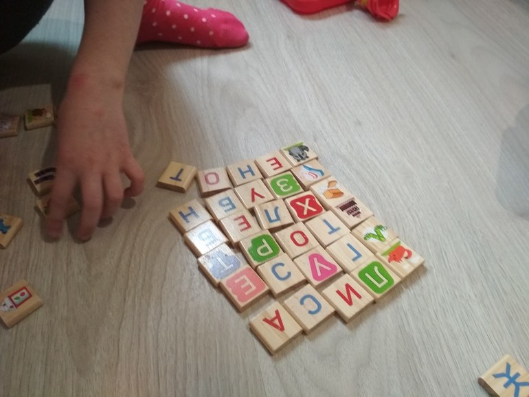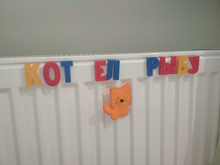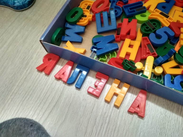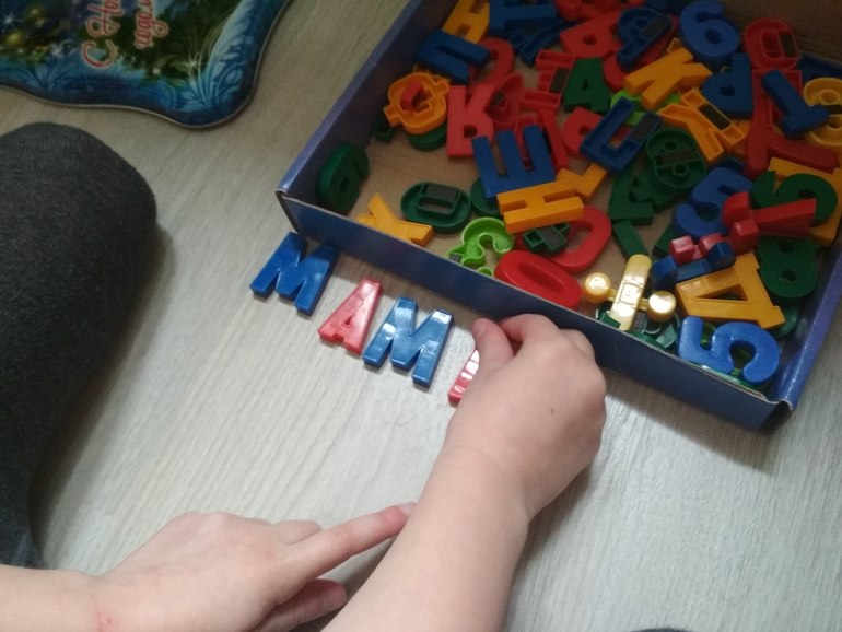 Чаще всего мы просто составляем друг для друга слова из магнитных букв или кубиков, обязательно по очереди)