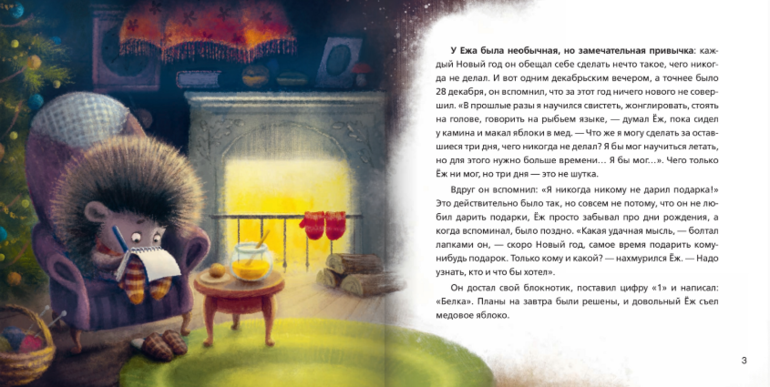 Накануне Нового года Ёж вспоминает, что никому и никогда не дарил подарков, и решает исправить это. Но не так-то просто сделать подарок, который действительно порадует друга. Белка хочет что-то нужное, Дикобраз вообще не хочет ничего, а Паук больше любит дарить подарки сам. Добрая и весёлая история о том, что надо не только уметь дарить подарки, но и уметь их принимать.