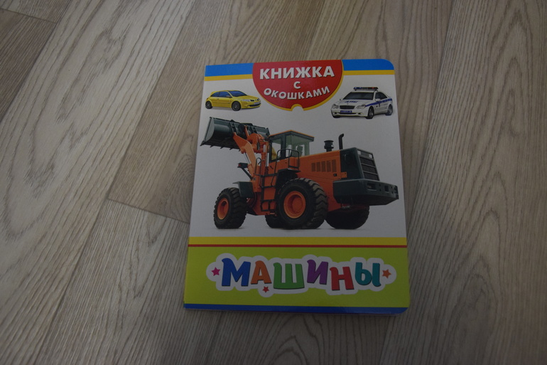 И небольшая книжка с окошками про машины. Средне. Сложные названия для Саши:седан, багги и пр. Но открывает окошки,смотрит. Хотя то,что внутри по мне не всегда ребенку интересно.