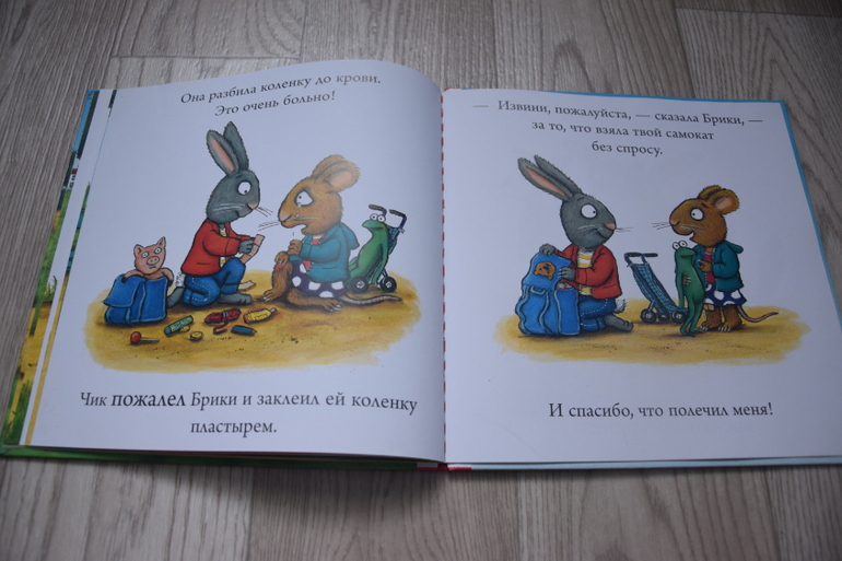 Познакомились с ещё одной книгой про Чик и Брики. Первая у нас - про воздушный шарик. Сын ровно отнесся к книге. Но решила попробовать купить ещё одну. Больше кстати заинтересовала, читаем иногда.