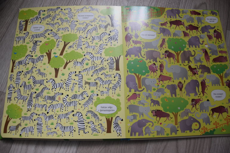"В зоопарке" Загадки,головоломки. Для деток постарше. Виммельбух. но мы можем немного залипнуть,поизучать. По акции на WB купила.