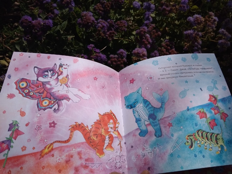 Здесь та же тема цвета, смешения цветов, получение разных оттенков, их названия. Их побольше, чем в первой книге, но мне бы хотелось еще больше )) Радует, что речь в книге не только о цветах спектра. И, конечно, тема творчества и дружбы.