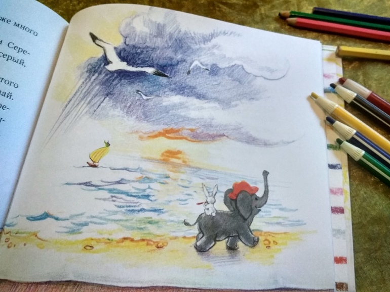 Нравится, что она напечатана на офсете и чистые, достаточно яркие акварельные тона не бликуют, не бьют по глазам, а чуть приглушены, не теряя чистоты и прозрачности. Даже красный не утомляет и не возбуждает.