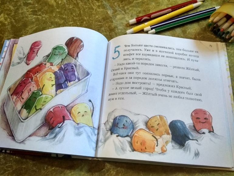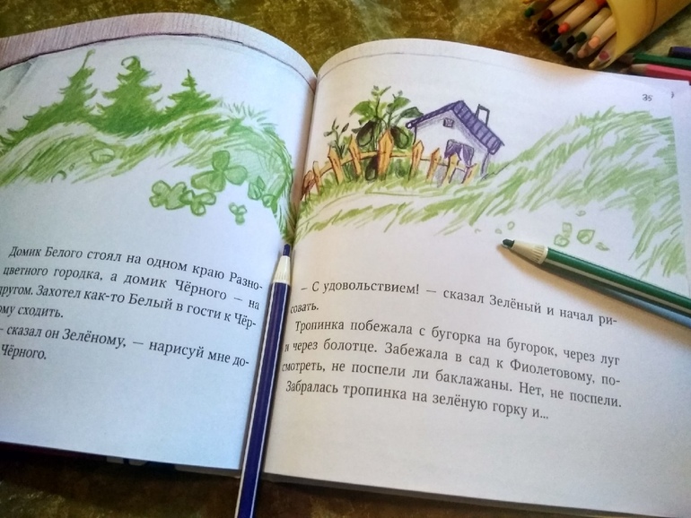 Еще одна книга на ту же тему - цвета, их смешение, взаимодействие и плюс призыв к рисованию это Жили были карандаши Тамары Михеевой. Ее много раз показывали в сообществе, но в последнее время вижу ее все реже в дневниках, а книжка, на удивление, все еще имеется в наличии.