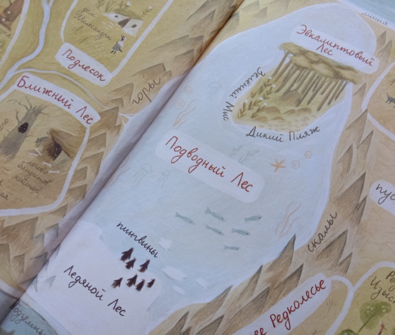 Все сказки разбиты на группы по территориальной, так сказать, принадлежности. Чтобы не потеряться в этом мире, на форзацах дана подробная карта: