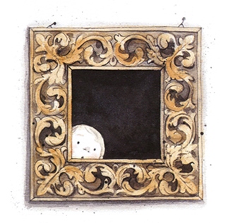 Когда герой поднимается по лестнице, мы можем рассмотреть (почти над его головой) фрагмент работы самой Майи, которой нашлось место и в этом чудесном книжном доме.