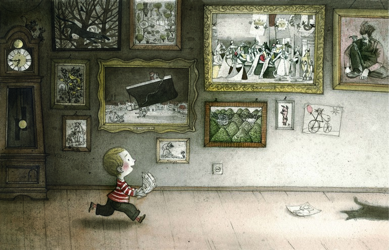 Почти с самого первого просмотра книги мне не давала покоя эта самая картинная галерея, по которой бежит главный герой вслед за котом!