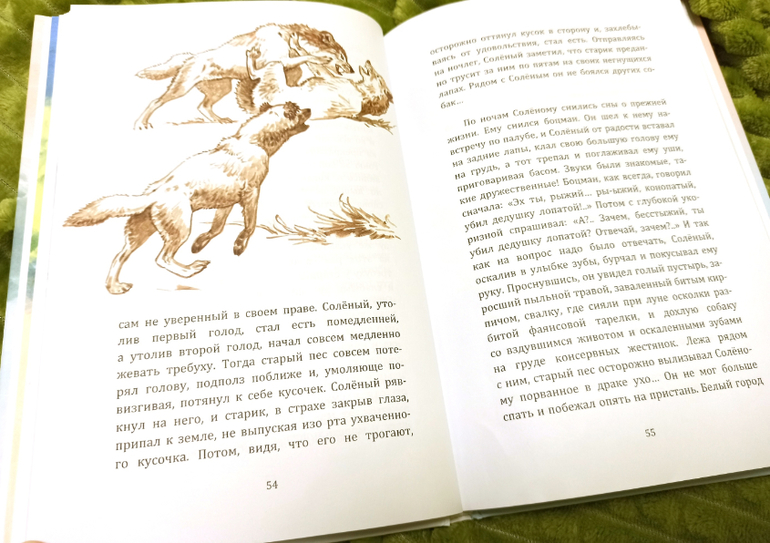 «Мне книга понравилась тем, что она такая эмоциональная. И там о собаках, а я их люблю. Эта книга реалистичная и с собаками случаются разные приключения. Всё так захватывающе и круто. Ещё мне понравилось, что в книге крупный шрифт. Хоть и кажется толстой, но в ней большие картинки. Идеально подойдёт для семейного чтения. В книге 4 рассказа мне понравился второй, он такой крутой и с собакой по кличке Солёный случается много разных приключений. Его назвали Солёный потому, что когда его нашли, он был в солёной воде. Мне это рассказ показался эмоциональнее других рассказов. Всё очень круто. Эмоции в первых двух рассказах такие, что захотелось плакать.»