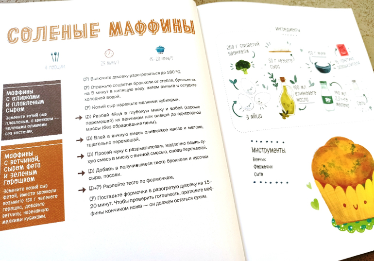 Главное преимущество этой книги: минимум текста, крупный шрифт и хорошо выделенные ингредиенты. Добавлена информация о количестве порций, времени приготовления. Больше никакой «воды», все четко и понятно.