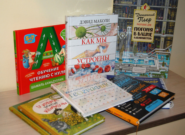 "Букварь-тренажер. Обучение чтению с нуля (5-7 лет)", "Скорописание", "Блокнот-тренажер. Гимнастика для ума. 10-12лет" Постараюсь написать отдельный отзыв. Если коротко, то неожиданно понравилось. (я была настроена скептически, да и недешево, купила по акции) По двум мы активно занимаемся: с Колей по букварю, с Машей "Гимнастикой для ума". Скажу сразу про гимнастику. 10-12 лет это перебор, Маше в 9 уже потолок. В 10-12 будет слишком легко, мне кажется.