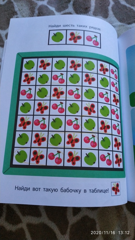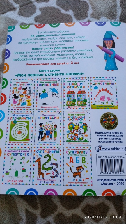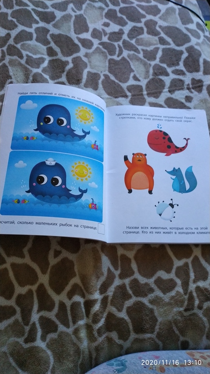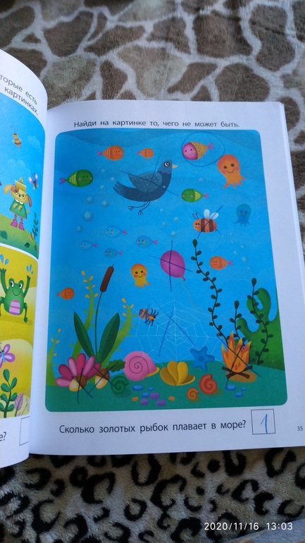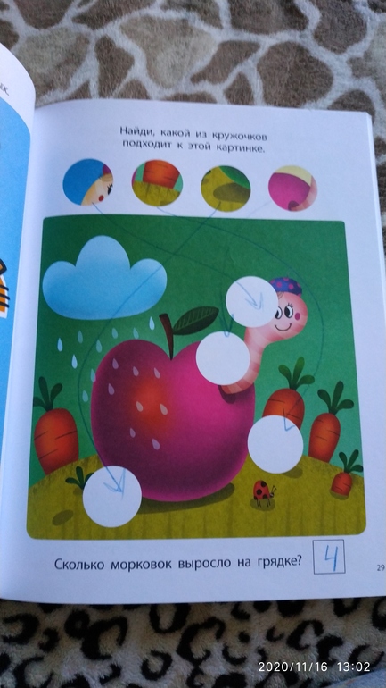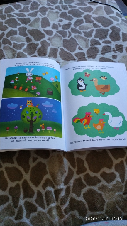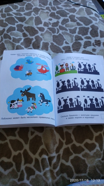 Ну а если без сарказма, то, несмотря на неприятный осадок от того, что прислали в подарок книгу б/у, о самой книге хочется сказать только хорошее. Формат А4, плотные листы, яркие картинки, интересные задания для малышей на внимательность и логику. Задания начинаются с простых и постепенно усложняются.