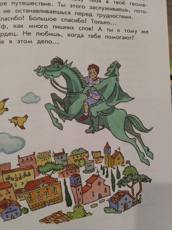 Подскажите, пожалуйста, там где мальчик с памятником и где люди на крылатом коне - это из каких книг?