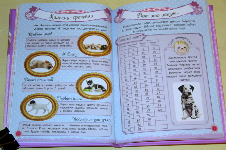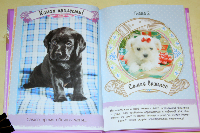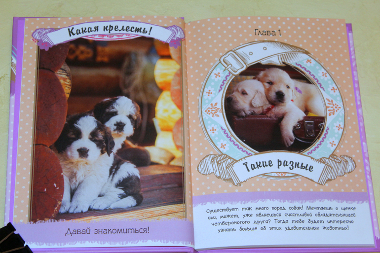 Какие лапочки! Щеночки Точно такую книгу про кошечек покупала Насте ранее. Ей она очень понравилась. Решила приобрести и вторую. О собаке она пока только мечтает. Так что пусть читает про этих милых пушистиков.