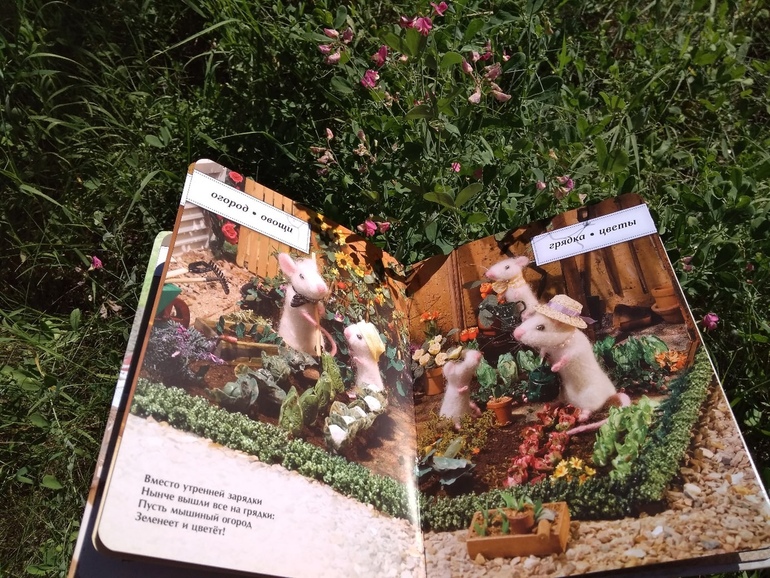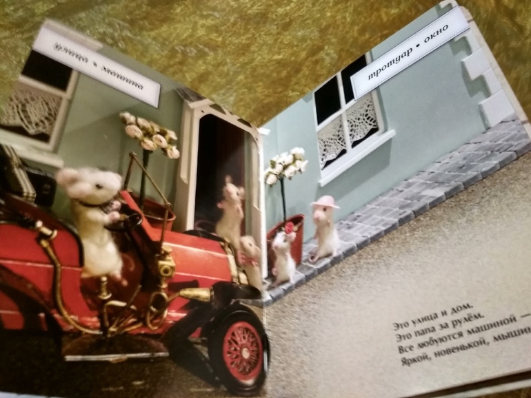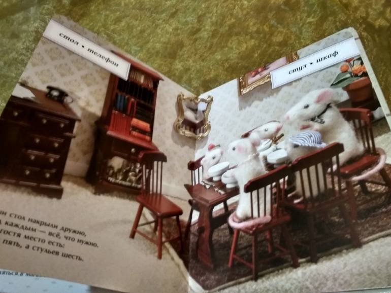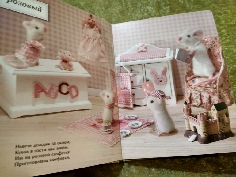 А то я-то их сто лет назад взяла, еще в прошлом году. И сфотографировала и забыла напрочь. Потому что другими фотографиями завалила, засыпала, погребла под книжными развалами белых симпатичных мышек. Я сначала брала одну книгу про время, потом еще две докупила про слова и про цвета, увидев как книжка понравилась уже совсем почти взрослым девчонкам. Цифрами решила пренебречь. В принципе мы и цвета и слова нашли бы по каким книгам учить, но скидки... И картонные страницы... А значит, книги с премиленькими прехорошенькими мышками в уютнейших интерьерах кукольного домика, пасторальных пейзажах и улочках игрушечного города можно без боязни давать в любые лапы ручки, когда они перестают все тащить в рот. Купила их как книги-завлекалки, книги-мармеладки просто так, для добавления мимимишности в разное букварно-полезное, чтоб периодически отдыхать и развлекаться. При том что делать это можно под маркой полезности, ведь на обложке написано "Умная семейка". Особенно умного там ничего в глаза не бросилось, а вот милого и идейно-полезного для игр хватит. Чтоб ситуации в игру перенести, в свои кукольные домики. Или просто мысленно поиграть, глядя на страницы. Имена дать всем мышатам, семейных легенд напридумывать. Полистать перед сном, а потом в голове докручивать какую-нибудь историю, пока не спится.