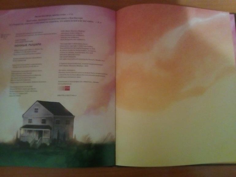 Мне это стихотворение очень нравится, я его интерпретирую для себя и для детей так, что рыцари - это Ангелы, которые охраняют нас. Иллюстрации ночные, завораживающие, сине-фиолетовые. Когда открываешь последнюю, светлую, хочется зажмуриться, как когда выходишь из темноты к свету. Мальчишкам книга очень понравилась, разглядывали её с большим интересом.