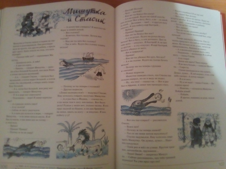 Это тот же рассказ, что и "Фантазеры", но с совсем другой концовкой. Тут нет в конце истории с Игорем и его сестренкой, на примере которой разбирается чем фантазии отличаются от лжи. Тут просто нафантазировавшись Мишутка и Стасик устали, дружно решили, что врать нехорошо и пошли домой. На мой взгляд, концовка с Игорем намного интереснее и полезнее.