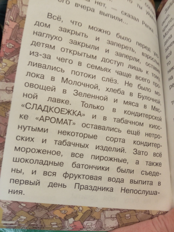 В Празднике непослушания курение ставится на одну ступень с мороженным, и у ребенка, как мне кажется, может возникнуть ложное впечатление, что сам процесс так же приятен как поедание мороженного, а неприятны только последствия, как и в случае с перееданием мороженного. Мне не нравится, подсознательный месседж этой книги.