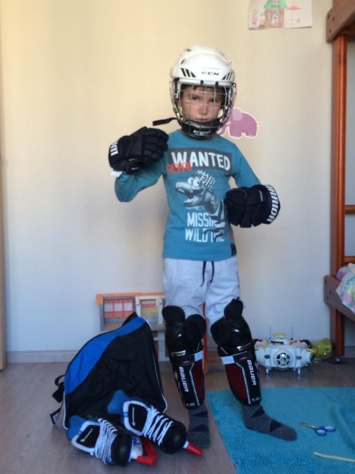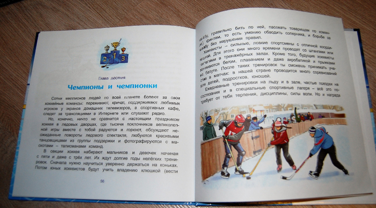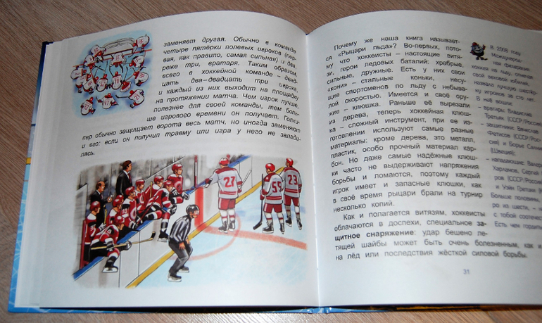 Про эту книгу писала в ноябре. Но та была из библиотеки, а это теперь наша, родная - дед Мороз принес за красиво-наряженную елочку. Опять читали. Коля сначала думал, что книгу нужно опять сдать в библиотеку и даже как-то грустный был.. Когда я ему сказала, что это твоя книга, глаза аж засветились :)) Маша читала сама, без нас. Повторюсь: очень хорошая книга о хоккее. А Коля уже не рисует хоккей - он теперь в него играет...